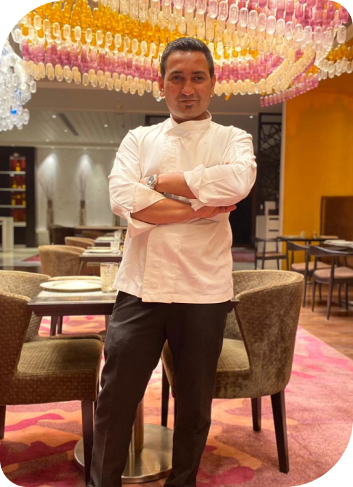 Chef Asim Khan brings with him over 12 years of culinary expertise, having honed his craft at the prestigious Taj Mahal Palace, Mumbai under the renowned Taj Group of Hotels. A true specialist in authentic Indian cuisine and refined Chinese delicacies, Chef Asim blends tradition with creativity, offering guests a memorable dining experience rooted in flavor, skill, and passion