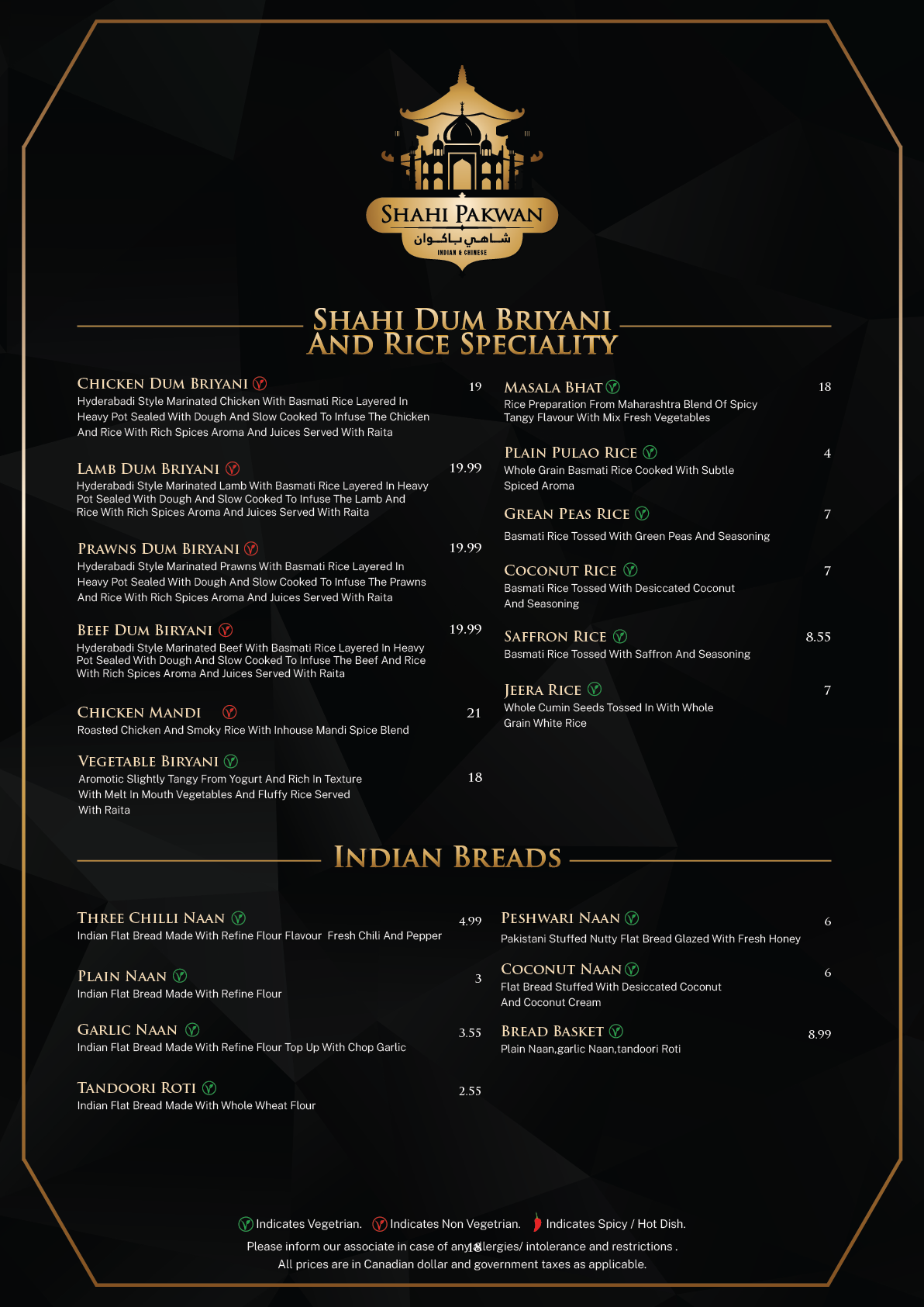 Discover the rich flavors of India and China under one roof at Shahi Pakwan, Vernon’s destination for authentic, handcrafted cuisine. Inspired by the grandeur of Awadhi and Mughlai traditions, and the bold zest of Schezwan and Cantonese cooking, our menu is a celebration of culinary heritage.